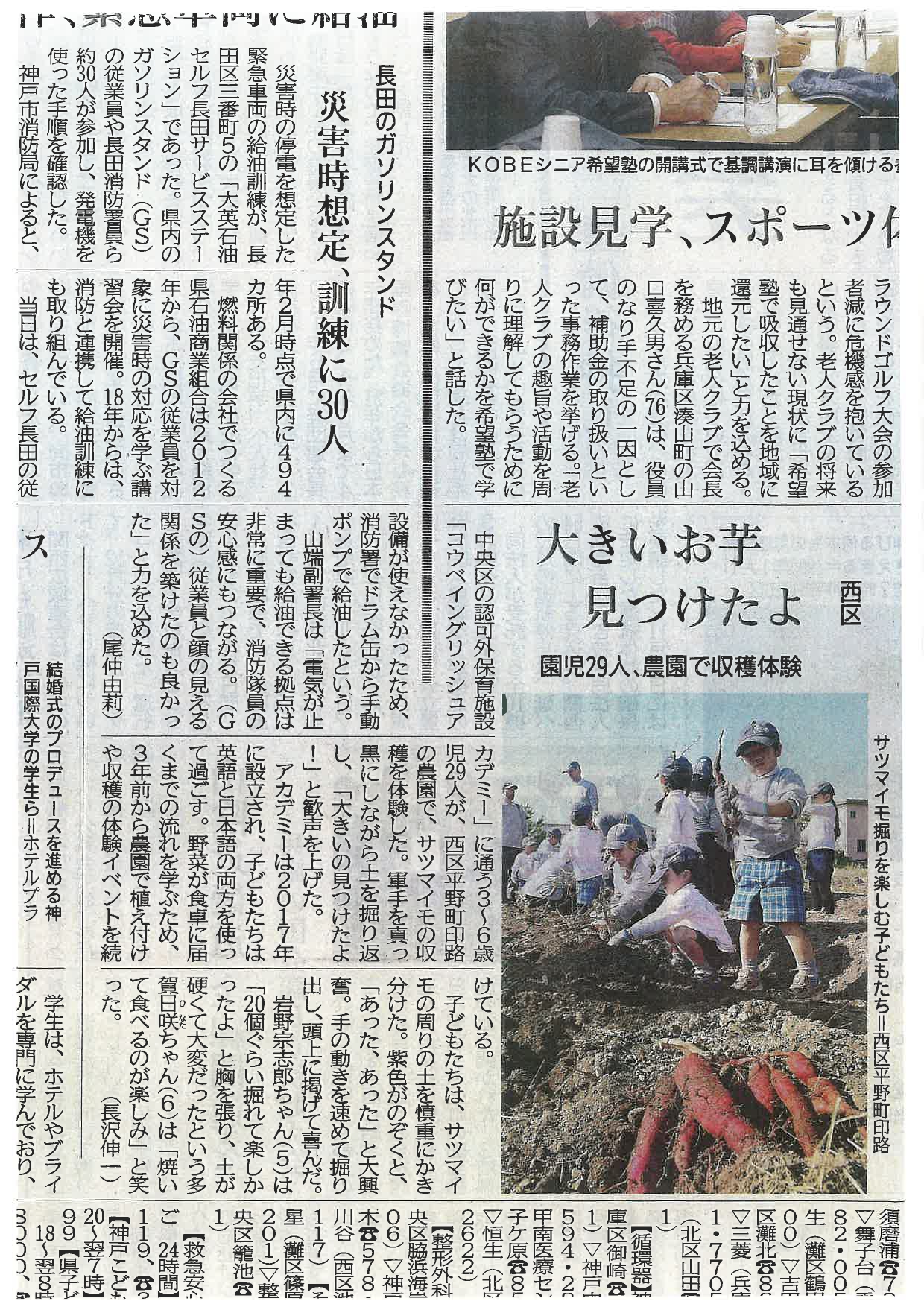 スクールの遠足の様子が神戸新聞に掲載されました(2025年11月21日朝刊)